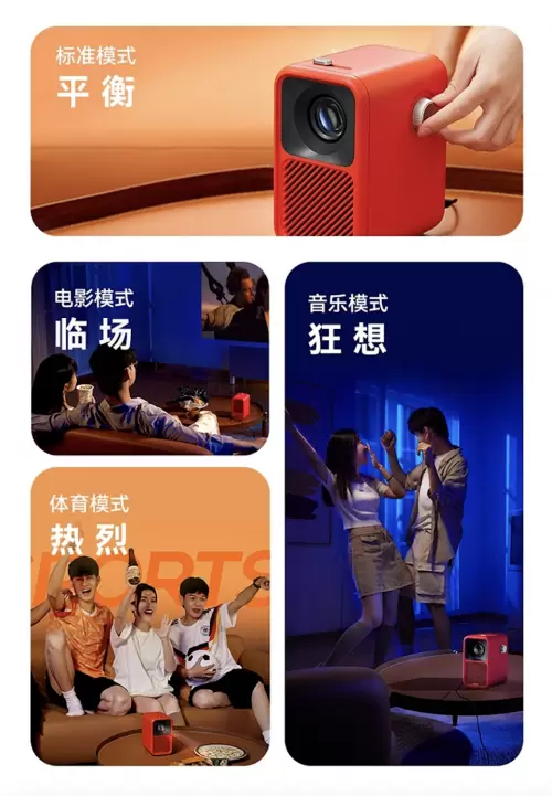 声音方面,白牌机大多选择的是较为便宜的基础款喇叭,仅仅只能听个响,没有任何的声学调校和技术加持,往往都是噪音很大,声音干涩刺耳,甚至有被网友笑称为玩具级音响。而微果Y1选用的是更高品质的稀土强磁材料音箱,每一台都经历“金耳朵”声学调教,用专业对待听觉:在声音参数曲线上表现的更稳定,从而在实际体验中声音更富有张力和层次感,打造出标准、电影、音乐、体育四种模式,满足你的不同场景需求。