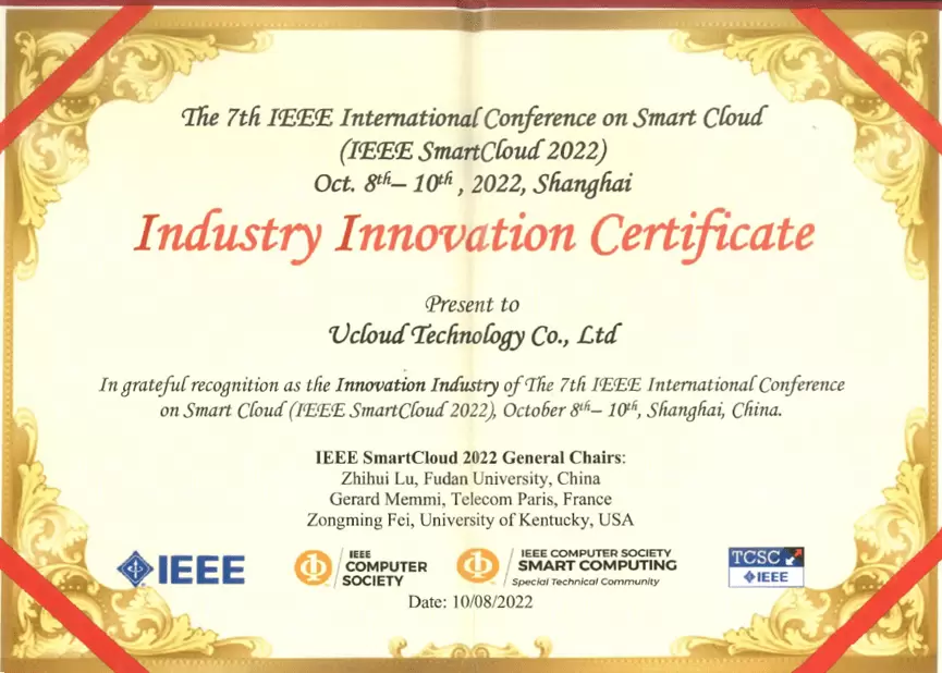 UCloud优刻得荣获IEEE SMARTCLOUD 2022企业创新奖