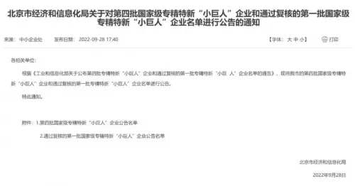 入选企业则是优质中小企业的佼佼者,是专注于细分市场、创新能力强、市场占有率高、掌握关键核心技术、成长性高的“排头兵”企业。