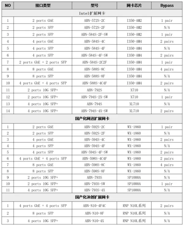 2 x PCIE扩展槽,支持千兆、万兆接口