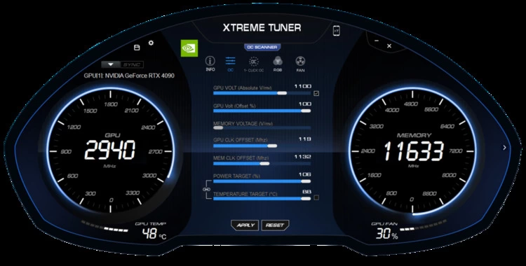 使用影驰XtremeTuner魔盘工具,还可对影驰 RTX4090 金属大师OC进行适度超频,进一步解锁功耗和频率上限。