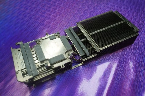 第二代「炫之黑曜石」散热器还升级了特大面积散热鳍片,内建8根复合式热导管,加入镀镍设计加强抗氧化能力。背面的穿透式金属散热背板在右方进一步加大积镂空间,配合升级后的第三组风扇和镂空PCB设计,可让显卡温度得到进一步降低,延长显卡使用寿命。