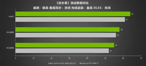 本次游戏测试分别为《赛博朋克2077》、《逆水寒》、《永劫无间》、《消逝的光芒2:人与仁之战》以及《守望先锋2》。其中《赛博朋克2077》、《消逝的光芒2:人与仁之战》主要测试其光追效果,《逆水寒》主要测试其DLSS 3 性能,《永劫无间》、《守望先锋2》主要测试其NVIDIA Reflex性能。并分别以1080P、2K、4K分辨率测试各游戏性能,其中1080P、2K分辨率使用DLSS质量模式,4K分辨率使用DLSS 超级性能模式。