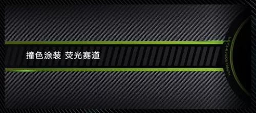 在竞速黑配色机身背面,覆盖了经典质感的碳纤纹理,视觉层面将战斗气息直接拉满。背部居中处还对齐覆盖了荧光绿、碳黑两色的经典撞色涂装,双荧光线条的纹理设计形似一条梦幻赛道,让人热血沸腾。赛道顶部贯穿着标志性的圆环相机模组,中间小圆内镭射出和赛道一体色的荧光绿“GT”字样,独具风格。
