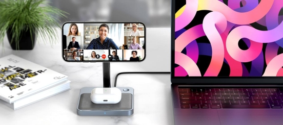 现在移动办公是主流,硬件部分的手机、平板、笔记本,应用软件采用的智能语音输入、多屏视频会议等形式都是其中的组成部分,支架式无线充作为配件产品更多考虑的是支持手机移动办公,无论是在办公桌前,还是在客厅、卧室,满足充电的同时使用手机进行办公或娱乐,MagSafe功能让双手解放,一边处理其他的事务,一边进行视频会议,而且支架支持角度调节,能够保护颈椎,这些点相结合起来,相信会让很多需要居家办公的用户感到很满意。