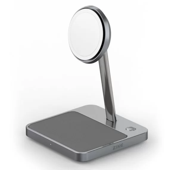 从ZIKE的首款产品来看,各方面的设计都很好的体现了这个品牌从细节处探索创新的发展路径,比方说定位于苹果的MagSafe生态,支持iPhone(12以上机型)与AirPods同时无线充电,看起来更像是苹果粉专用产品,但其实并不尽然。现在手机的使用需求大,用iPhone作为主力机型,另外准备一款安卓备用手机的人并不在少数,这款支架的无线充电板没有像其他支架无线充一样设计成耳机凹槽的形状,而是植绒材质的平面,很显然也考虑到了大量非磁吸手机用户和TWS耳机的无线充需求。