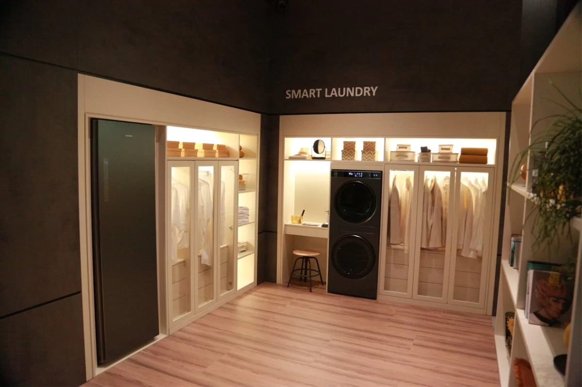 值得注意的是,这些产品不是单个陈列展示,而是被置于客厅、阳台、卧室、厨房等真实生活场景,家电、家装、家居融为一体,让参观者身临其境般地感受到与传统家庭截然不同的生活方式。
