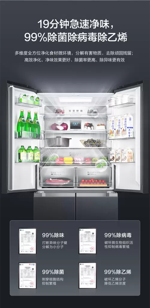 除了深入探究中国家庭的食粮浪费现象,美的冰箱还持续挖掘新鲜科技的新可能,以领先技术守护食粮健康与新鲜,让冰箱避免成为食粮浪费的中心。美的冰箱的“PST+智能净化科技”能在19分钟异味达到峰值之前就能歼灭异味和病菌,有效防止食物污染,保证食物保鲜健康,守护万千家庭的食粮安全感。