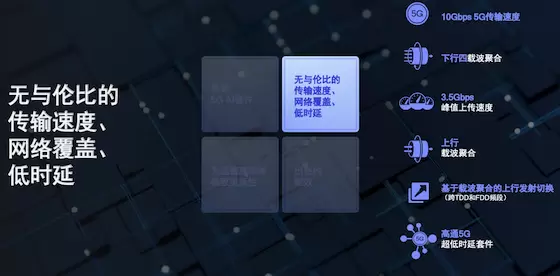在网络性能方面,上行链路性能得到了显著提升,峰值上传速度达到了3.5Gbps,可跨TDD和FDD频段支持上行载波聚合和/或基于载波聚合的上行发射切换,还配合有高通5G超低时延套件。