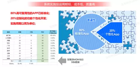 KingFactory目前提供通用性的APP多达400余个,同时还支持个性化app的开发。以某集团MOM项目为例,项目实施只需要开发17.6%的个性化APP即可完成一套数字化系统的开发工作;依托本次发布的WellinOS云操作系统,业务工程师可以随时随地根据自身业务需求完成个性化App的开发、调整和部署。在实际项目过程中,此种方法使得App开发周期大大缩短,能够做到“指周可待”甚至是“指日可待”。
