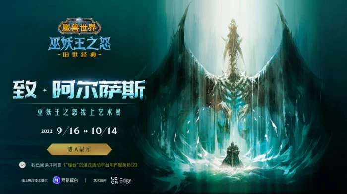 9月27日,《魔兽世界》怀旧服“巫妖王之怒”正式上线,为迎接这一时刻,网易瑶台携手《魔兽世界》于9月16日-10月14日特别推出《魔兽世界》“致·阿尔萨斯”巫妖王之怒线上艺术展,为广大游戏玩家和观展观众献上一场兼具趣味性、仪式感、充满情怀和回忆的极致视听交互体验,吸引了大量玩家关注。