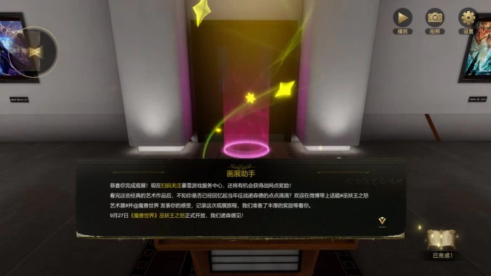 在网易瑶台的技术支持下,本次活动还融入了“观展有礼”的创新互动模式,用户可以在自由欣赏艺术作品的同时体验沉浸式互动玩法,搜集彩蛋、赢取观展好礼。通过在展厅内设置小游戏的交互形式增加活动趣味性,并以《魔兽世界》战网点作为奖励提升用户参与度,将游戏元素与观展形式相结合,联动玩法大大丰富了用户的线上娱乐体验。