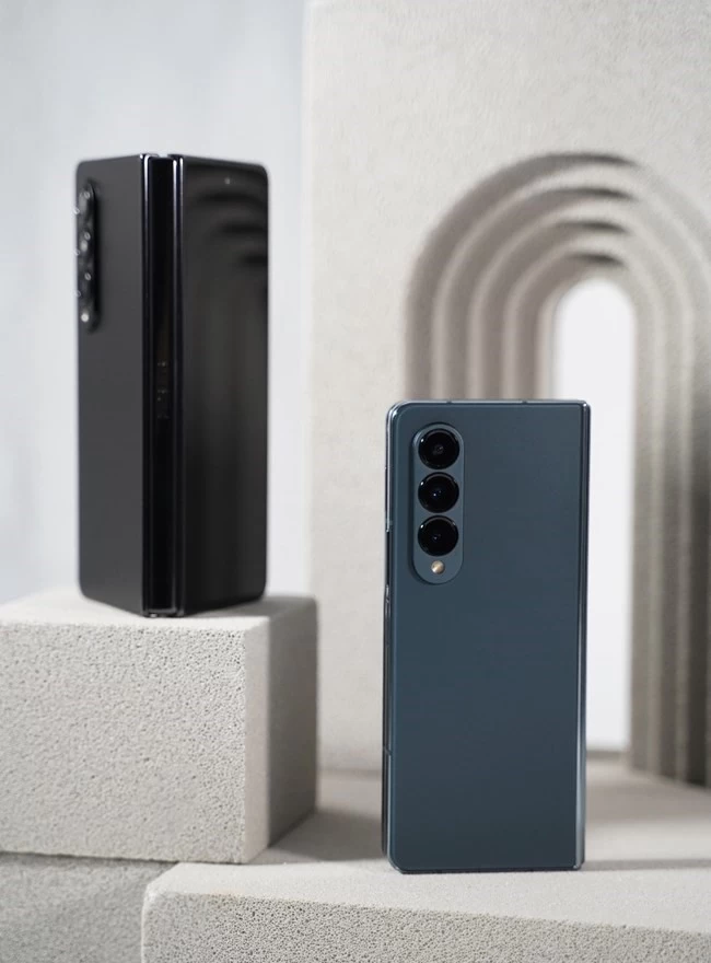 三星Galaxy Z Fold4在沿袭上一代产品经典设计风格的基础上,经过一流的工业艺术设计焕发出了新的活力。哑光深灰玻璃后盖和亮色金属边框的组合,观感与质感尤为出色。金属材质的边框设计更加立体,椭圆形后置模组,与三颗摄像头的曲率相同,更是带来了浑然天成的和谐之美。铂萃黑、云粉金、空山绿三款时尚配色充分彰显个性潮流,小巧精致的折叠形态外观,尽显尊贵气质。