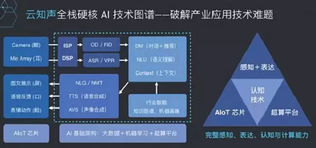 云知声从交互入手,构建了语音感知、认知和表达、超算平台与图像、机器翻译等多模态人工智能硬核技术,并将这些能力封装在自研 AI 芯片之上,通过“云端芯”一体化产品体系面向行业推出全栈式 AI 技术能力,打造从 AI 技术创新到产业应用的生态闭环。并实现在智能家居、智慧医疗、车载、出行、教育、酒店等领域的规模化落地实践。