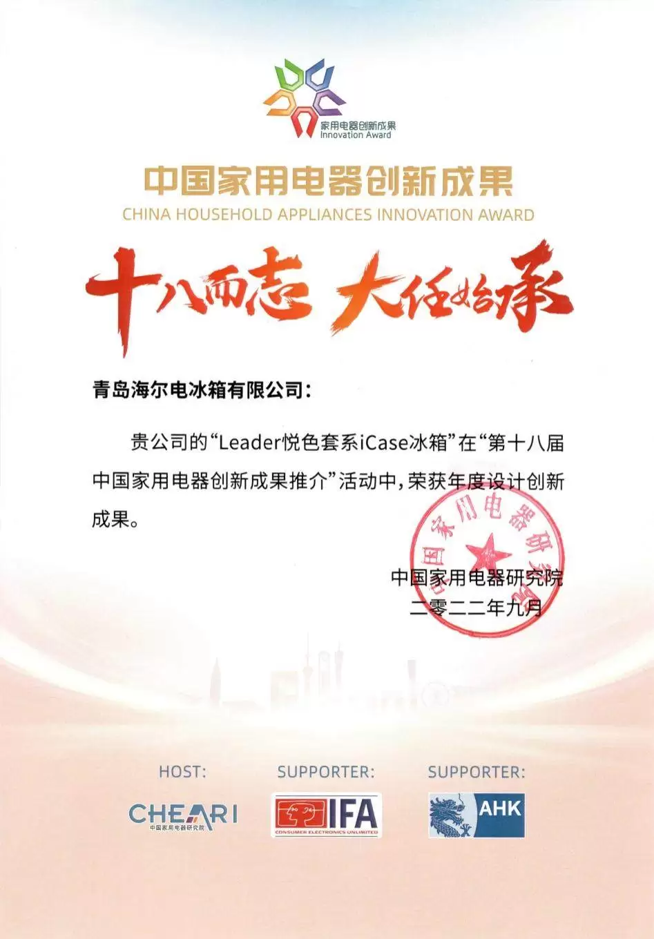 为用户创新!Leader冰箱再获设计创新成果奖