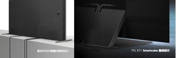 索尼X95EK采用活动盖板来完成全隐藏式的集线设计,TCL X11有部分线还是裸露出来