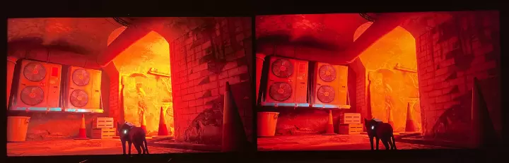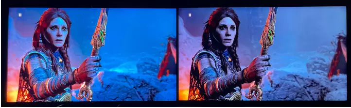 全屏模式下两者HDR亮度都很足够,但是当出现类似日出日落逆光画面或者游戏电影中爆炸画面的时候,电视画面局部出现明显高亮的点光源爆发高光的时候,索尼X95EK还是有比较明显的优势的,X95EK可以表现出更接近真实世界的视觉真实感。