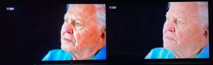 在冰冻星球II的开篇,大卫老爷爷面部特写画面,人物面部表情和眼球细节在索尼X95EK上表现的更丰富;
