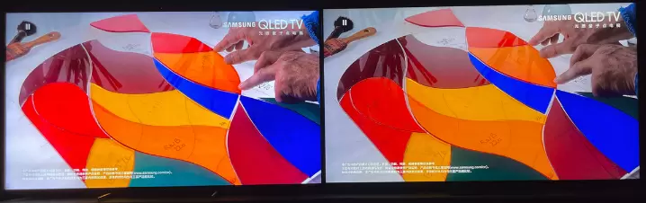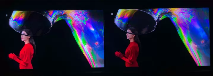 左索尼X95EK 右TCL X11,可以看出来索尼X95EK使用了广视角技术,而TCL X11在大角度的情况下颜色开始比较明显的丢失