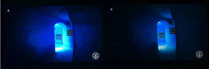 左索尼X95EK 右TCL X11,在高光区域没有过曝保障足够细节的同时,暗部区域也可以看到更多的墙壁区域
