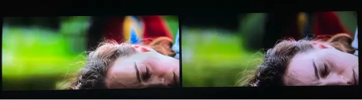 左索尼X95EK 右TCL X11,索尼X95EK在人物脸部细节和背景草地都更加好看一些