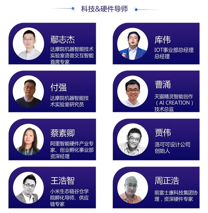 在硬件方面,洛可可、富士康、小米等会提供相应的解决方案,值得注意的是,他们将会在智慧园区、智慧小镇寻找VENDOR,这将成为大家一个订单的来源。除此之外,更多达摩院和阿里云的专家导师也加入了导师团: