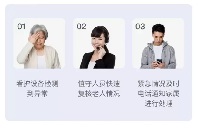 除了硬件的基础看护,萤石还与具备相关资质的第三方服务商合作,推出老人看护服务。用户在开通萤石人工看护服务后,专业值守人员通过AI算法以及多种硬件看护设备检测老人活动情况,在线远程看护老人,协助子女满足老人居家的安全照料需求。支持摄像机、智能呼救按钮等多种看护设备接入,多设备联动检测老人的活动情况。当设备发出告警时,值守人员会复核老人真实情况,出现异常则第一时间通知家属,让家属快速准确地知晓家中老人的状况。