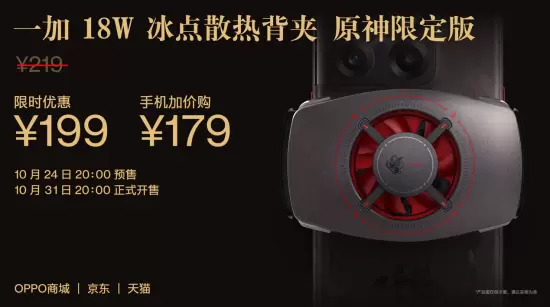 一加原神限定版 18W 冰点散热背夹也同时发布,外观采用胡桃的主题色,运行可点亮中心的蝴蝶灯饰。在背夹的加持下,一加 Ace Pro原神限定版运行原神 2 小时后,可实现平均帧率 59.42 帧以及 34.2℃ 的温度表现。发售价格为219 元,限时优惠199 元,同新机一起购买可享受加购价 179 元。
