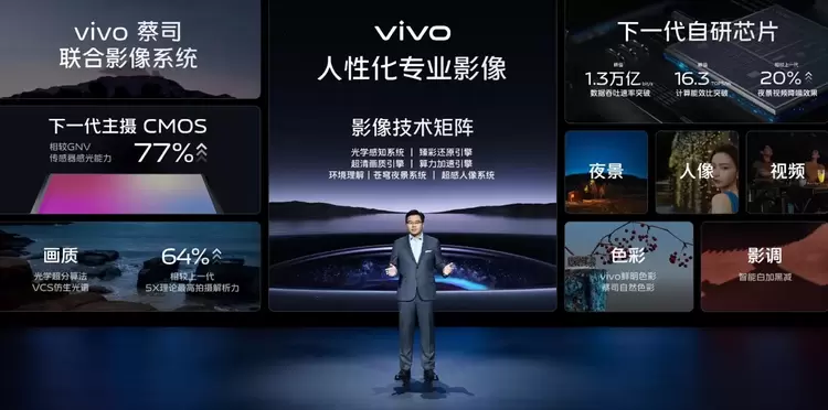 除了硬件外,vivo还在沟通会中介绍了苍穹夜景系统、光学超分算法、超清画质引擎以及臻彩还原引擎等算法升级。从色彩到影调,我们可以看到vivo产品拍摄出的样张以及能够比肩专业相机的效果,做到了计算摄影“大象无形”的程度,不刻意不做作。