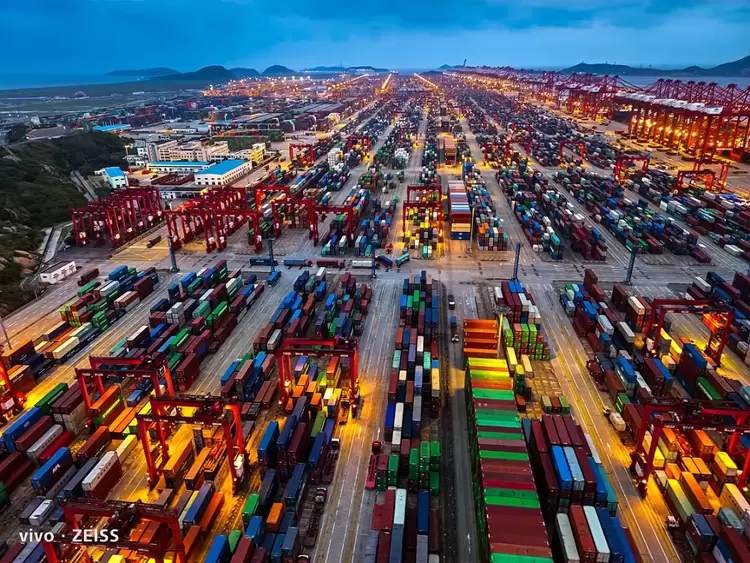 第一张是上海洋山港的自动化集装箱码头夜景照。这张照片最令笔者印象深刻的是vivo在夜景环境下的颜色还原能力。