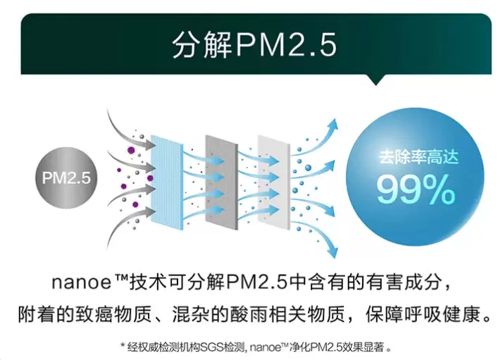 海信5G荣耀家中央空调搭载的nanoe健康模块,采用了分解式净化的模式,释放出的纳米水离子能使空气中的甲醛、PM2.5、过敏物质以及大部分有害的霉菌、细菌等失去活性,而且这种纳米水离子呈弱酸性,接近健康皮肤的PH值,甚至还具有美肤护发的功效。
