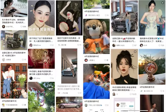不难发现,#开启我的新中式 这一活动主题,既是一个内容话题,也是一句行动号召,在小红书对话题的强势运营下,用户不仅会积极分享自己发现的新中式美学元素,也会踊跃参与到针对不同美学的理解之中,从而让话题突破圈层实现更广的品牌传播。