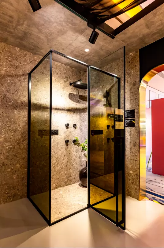 有别于传统的天地轴设计,科勒精选凌越系列淋浴房采用隐藏式转轴设计与极致的门缝结合让整体空间得到扩容,进出更加便捷。同时,落地式细长拉手及内部圆弧面的设计也让老人与小孩都能轻松使用,握感更加舒适。科勒精选凌越臻彩绘印灵雅石浴缸更是以亮丽的色彩和个性化定制的线条诠释着极简主义的现代几何美学,赋予卫浴空间设计更多想象空间。