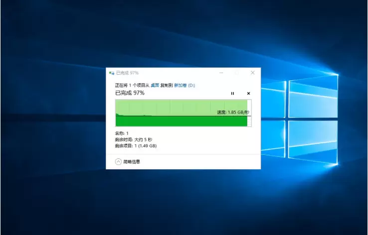 而在实际文件传输测试时TiPlus5000依旧保持了优秀的水准,全程保持住了1.85GB/s的速度,并且曲线非常平稳,几乎没有波动。
