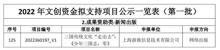 作为代表三国传统文化“走出去”的精品游戏之一,《少年三国志:零》对中华传统文化有着较深刻的价值挖掘,在海内外有着较广泛的玩家群体,其文化出海效果备受好评。凭借着文化出海成绩,《少年三国志:零》在众多申报者中脱颖而出,成功入选2022年上海市文创资金项目。