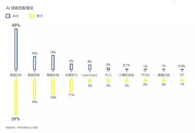 数据分析最易跨界,掌握机器学习的AI人才最紧俏根据智联招聘的调查,数据分析是所有AI人才技能标签中最成熟的技能,占比最高为48%。作为AI领域的“基础建设”,从事数据分析的求职者是向AI领域转换门槛最低的人群,也是最容易跨界从事AI领域的人群。其次,具备图像处理技能的求职者占比14%;数据挖掘技能人才占比13%;而机器学习人才仅占比6%。