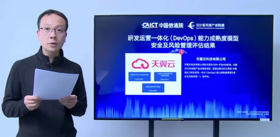 10月28日,第十九届GOPS全球运维大会在上海召开,中国信息通信研究院云计算与大数据研究所副所长魏凯先生隆重公布,天翼云《研发运营一体化(DevOps)能力成熟度模型第6部分:安全及风险管理》能力成熟度评估结果,天翼云顺利通过1+级能力成熟度评估,成为业内第一家通过本评估的云服务商,第一家通过本评估的运营商,第一家同时通过安全开发、安全运营、安全交付三项评估的企业,标志着天翼云在安全能力建设、研发体系、效能领域达到了业内先进水平。