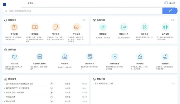思必驰轨交方案可以提供一套轨交知识数据管理平台,轨交运营人员可通过该平台轻松编辑上传客服知识、车站信息、常用功能、留言反馈等内容,有效提升轨道交通车站的服务能力,减轻人员负担,改善服务质量。