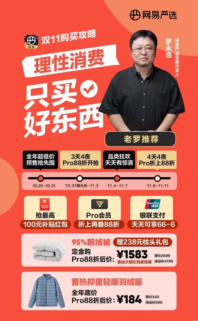 网易严选双十一官宣罗永浩为代言人,再联手发布品牌片倡导理性消费