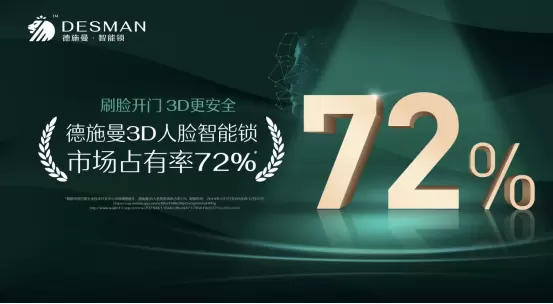 国产智能锁德施曼是首个将3D人脸识别技术带入智能锁行业的企业。2019年,搭载了3D人脸识别技术的R5/R7相继上市,标志着中国智能锁行业开启新篇章。从那以后,“人脸识别”智能锁逐渐成为中国智能锁市场的一大潮流。据中国日用五金技术开发中心市场调查统计,德施曼3D人脸智能锁市场占有率高达72%,相当于每十套3D人脸智能锁,有七套是德施曼智能锁。