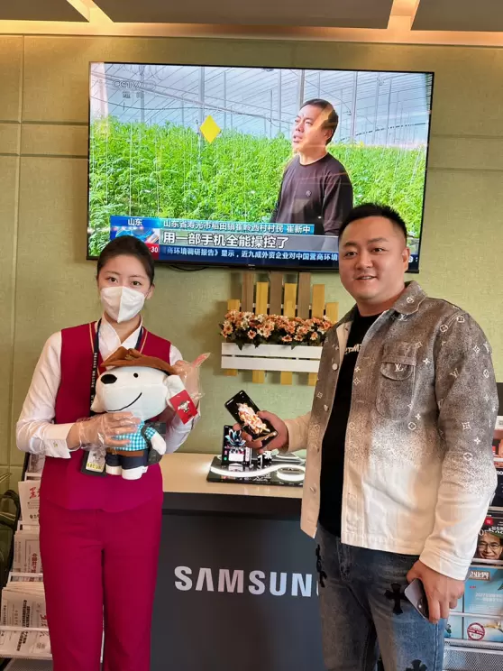 机场是商务人士飞往全国各地的集散地。作为三星的高端系列机型,三星W23、W23 Flip在全渠道开售的当天还惊喜“现身”全国八大机场贵宾厅,巨大的电子屏轮播尽享东方韵味的产品美图,来往行人纷纷被种草。