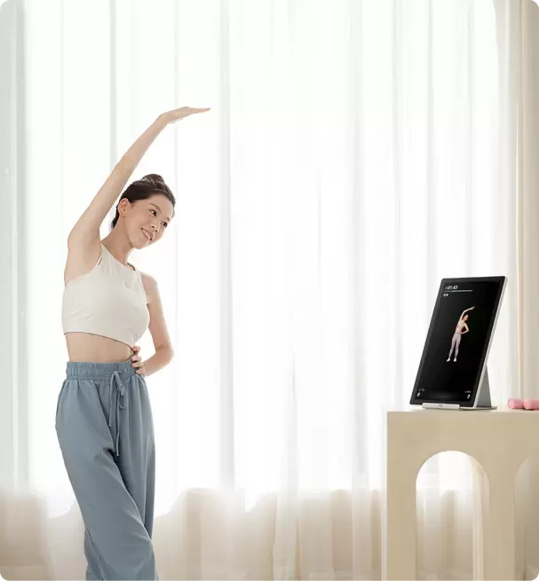 当居家运动热潮兴起,添添自由屏可化身“迷你健身镜”进行随时指导。新品内置明星私教倾心打造的上百种独家课程,还具备AI智能监测功能,可通过“火柴人投影”实时反馈用户动作,让用户在家就能享受专业化的私教服务,让健身变成一件快乐且有成就感的事。