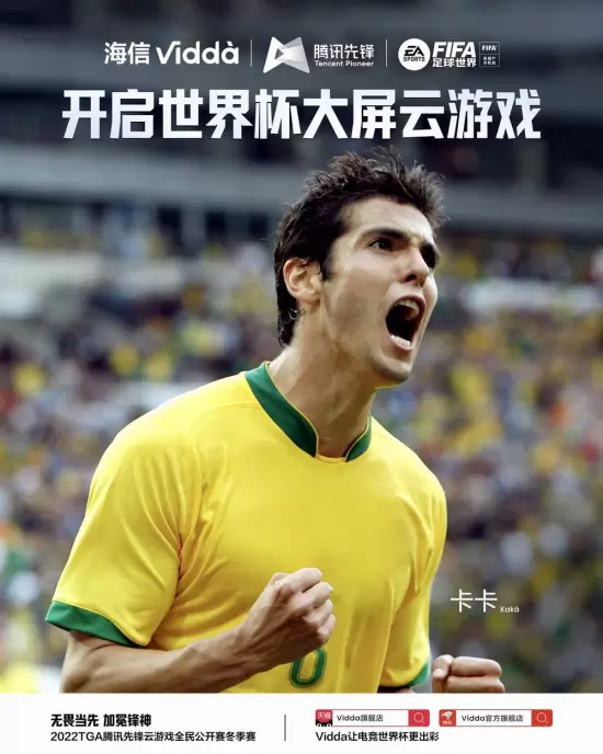 本次比赛面向全民海选,有兴趣的玩家可以登录腾讯先锋APP客户端报名,参加“云上先锋杯-王者海选赛”。同时,在Vidda X系列游戏电视应用商店搜索腾讯先锋,下载即可体验FIFA足球世界。2022世界杯即将开幕,等不及的朋友现在就可以提前体验世界杯的激情,FIFA品类游戏品牌大使卡卡在游戏里等着你!
