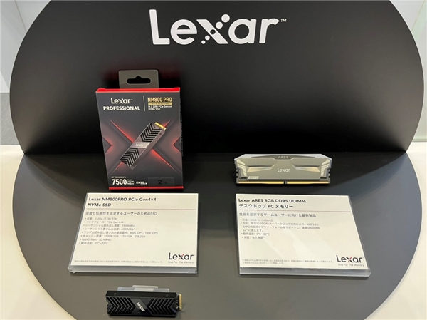作为首次参展Japan IT WeeK的消费类存储品牌,Lexar雷克沙此次展示了近期推出且具有代表性的存储产品,包括通过VPG400认证的Type B 存储卡DIAMOND系列、320GB超大容量的Type A 存储卡 GOLD系列、拥有旗舰级水准的NM800PRO固态硬盘马甲版和获2022德国红点奖的ARES OC DDR5 UDIMM 台式电脑内存。
