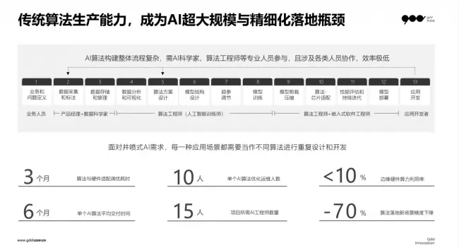 通常这种情况下,如果按照传统的人工作业方式,至少需要一个15人的专业算法工程师团队,从数据采集、数据标注、模型结构设计、超参调节、芯片适配、迭代优化、部署应用等13大环节,耗费数月甚至更长的周期才能交付完成。所以,“极不划算”的投入产出比也让加油站管理者们对AI的部署望而却步。
