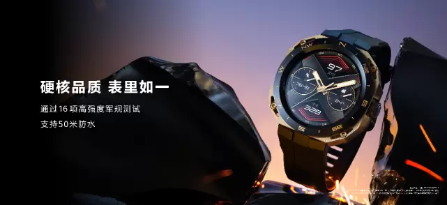 年轻人不止对外观设计有极高的审美诉求,对硬核性能同样看重。华为WATCH GT Cyber通过了包括低气压、高温、低温、温度冲击、流体污染、太阳辐射、淋雨、湿热、盐雾、砂尘、浸渍、振动、冲击、酸性大气、温度-湿度-高度、积冰冻雨等在内的16项高强度的军规测试,耐摔抗造,无论旅游、爬山、越野、露营等场景,还是处于极端环境,都能经受考验。