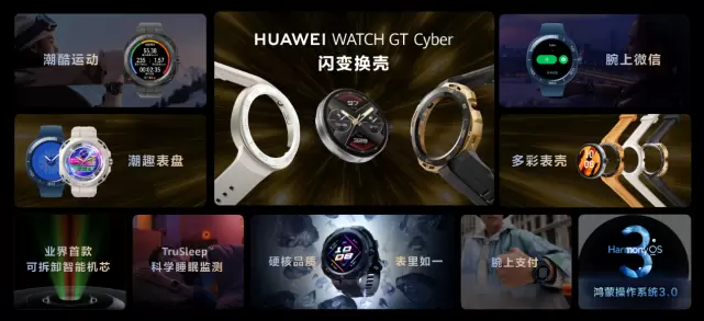 今日,华为Pocket S及全场景新品发布会上,华为WATCH GT Cyber正式亮相。以“天生不同,自由不羁”为设计理念,打造华为首款闪变换壳手表,并推出了业界首款可拆卸设计的智能机芯。全新的时尚潮流外观,六种表壳配色和六大专属主题,为经常切换不同场景的时尚潮人们提供全新的智能穿戴选择,其百变的设计风格为华为穿戴手表中迄今最具潮酷属性的智能手表。华为WATCH GT Cyber将成为勇于尝鲜、敢于颠覆、追逐个性的年轻人智能穿戴新选择。