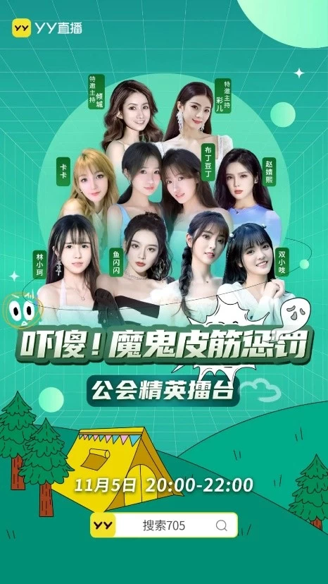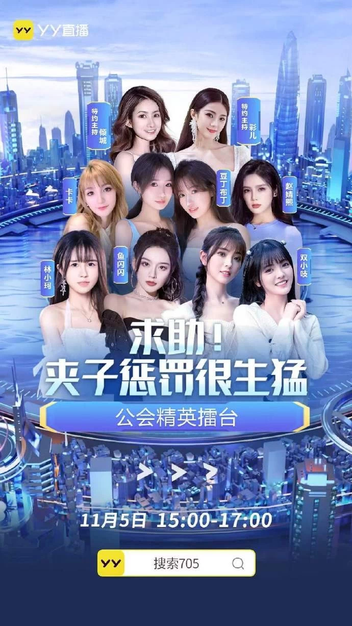 11月5日,YY直播精心打造的第三档交互式轻综艺《公会精英擂台》即将火热上线。据悉,《公会精英擂台》将邀请鱼闪闪、双小吱、林小珂等10位YY美女主播组成的全明星阵容担任嘉宾和主持,以“网红主播线下大秀”之态迎接全新升级的节目玩法和史无前例的高能惩罚。11月5日下午15:00-17:00、晚间20:00-22:00,打开YY直播App搜索“705”官方频道即可在线观看直播,同时还能参与互动赢取丰厚奖品。
