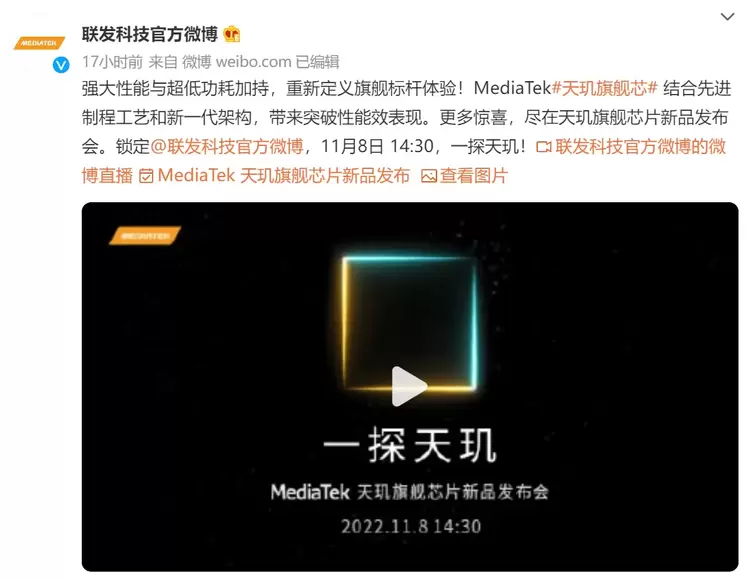 在科技数码圈引起热议的联发科新一代天玑旗舰芯片即将问世。近日,联发科官方微博发布预告,天玑旗舰芯片新品发布会正式定档11月8日14:30,并将发布会主题定为“一探天玑”,似在暗示这款芯片不简单,消息一出,便引发了广大数码爱好者的狂欢。在此之前,这款名为天玑9200的旗舰芯片频频曝出性能跑分,接连打破历史最佳纪录,顶级性能表现让众多网友表示对天玑9200的正式发布充满期待。