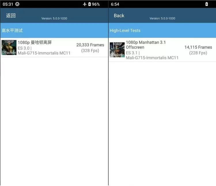 在GPU性能跑分部分,在GFXBench 1080P曼哈顿ES3.0和ES3.1离屏测试中,分别拿下了328Fps和228Fps的高分,性能最高提升最高达40%,刷新了安卓旗舰芯片的GPU性能天花板。这样的GPU性能可以在手机游戏提供更加强大的图形处理能力,进一步优化画质和流畅度体验。